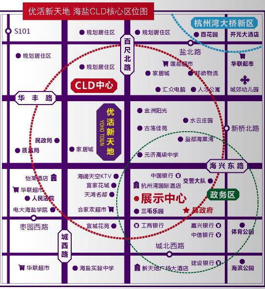 优活新天地 优活新天地购物中心,位于海盐城北,百尺北路和华丰路交叉口。城北板块是政府规划为一个中央居住区(CLD),而优活新天地占据着核心区域,辐射40多万海盐人,形成一个全新的商圈。 2015年当地政府围绕第二轮城市开发建设三年行动计划中确定的“一城两区四组团、五大工程双百亿”目标,进一步向北提升,扩张城市规模,实现城北板块服务业整体提升。在政府政策鼓励之下,将会有更多的海盐人落户城北,同时也将大力带动周边的商业发展,更多的投资客涌入城北。 如此极具发展前景的城北,受到越多海盐人的追捧,相信以后海盐人购物无须东奔西走,休闲无须绞尽脑汁,全新生活篇章,即将华丽盛启!