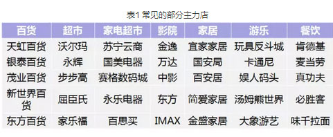 电商冲击下,实体店关门潮比以往来得更猛烈一些。 当然,企业跟人一样,也是有生命周期的,有死掉的自然有新生的,有衰败的,自然有还在蓬勃发展的。最近一段时间关门的不少,还在扩张的也挺多。 新店要开张,首先要招商(哎呀,还挺押韵的)。俗话说,擒贼先擒王,搞定进驻商家里的大Boss,也就是主力店显得十分重要。主力店就像东海的定海神针,决定着商场的定位是否清晰……商业购物中心失去了定海神针,结果会比东海惨得多,而且没地方去告状。 【搞不定主力店,分分钟死掉】主力店是商业地产其他店的中心、明星,由于引进这些店会带来巨大的品牌效应,从而能够吸引其他店进驻,缩短招商时间的同事减少招商成本。 表1 常见的部分主力店