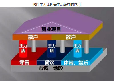 主力店是定海神针,是台柱子,招不来撑不起,来了又走会垮台。因此,要招得进来,还要留得住。如若不然,则后果很严重。 图1 主力店起着中流砥柱的作用