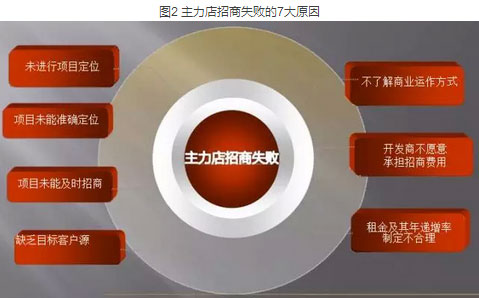 首先,无论商场是何种定位,主力店一定是面积大,租期长而且稳定的客户,失去了主力店这个中流砥柱,就失去了稳定了租金来源; 其次,购物中心主力店的退场会让其他非主力店商家萌生退意,尤其是招商期间,大家自然而然会想,大哥都不玩了,我们还玩啥,签约率必然骤降; 最后,明星店跑了,就没有办法打响品牌了,商业购物中心会直接从高大上沦为矮矬穷。 广州的珠江新城广场在2001年下半年开始招商,当时引入了北京华联超市、上海美好家建材超市,试图打造成以建材、家居、生活为主题的大型购物中心,但最终上演的是一个“理想萌萌哒,现实呵呵哒”的故事。 2003年,北京华联超市由于经营困难而选择离场,大家一看,不好,大哥都跑了,没人罩了我们还怎么混,于是乎在华联超市离场的时间段内,场内其他建材、家居、生活等经营商户也相继离开,一度使珠江新城广场的经营体系濒临崩溃,最后仅剩下上海美好家建材等少数商家勉为其难地继续经营。 由此可见,主力商家的撤离会引发严重的商业危机,这可真的不是吓你。 【主力店招商通常掉在7个坑里】运营商业地产的人不可能不知道主力店招商的重要性,但是现实中,依然有各种项目前仆后继的掉进7个坑里,要么被人填土埋了,要么费了很大的劲才蓬头垢面从坑里爬出来。 图2 主力店招商失败的7大原因