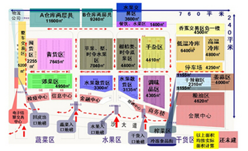 一、市场总体概况 荆州两湖农产品批发市场总投资6.5亿元,占地909亩,总建筑面积30万平方米。中心由十大专业市场、八大功能中心、两大配套加工区、两大仓储物流设施构成,经营粮食、棉花、油菜籽、蔬菜、水果、水产、肉食、禽蛋、副食、土特产、农机、农资等15大类4500多个品种,年交易各种农产品300万吨以上, 实现年交易额200亿元,其市场规模在华中地区首屈一指。该项目规划建设为一个功能齐备、业态全新的现代农产品交易物流市场。