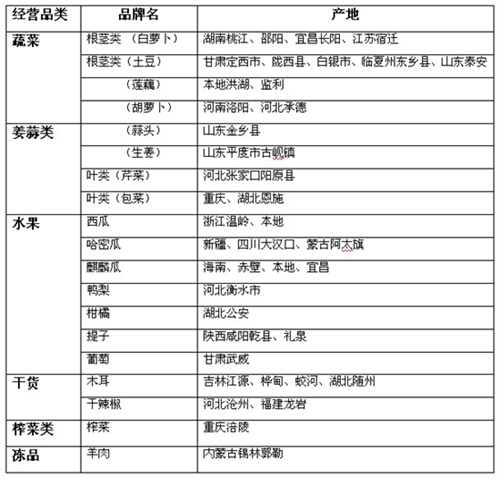 五、市场整体经营状况分析 该市场是一个集所有农产品于一体的大型批发市场,先后建立了荆州李埠、沙市岑河3万亩无公害蔬菜和郊菜基地,公安埠河、荆州弥市 2万亩葡萄基地,荆州八岭山万亩西甜瓜基地,沙市关沮、石首桃花山土鸡蛋基地等市内对接基地。还在省内长阳、巴东、恩施、枝江、当阳、钟祥等县市建立了8 万多亩高山反季节蔬菜和无公害蔬菜基地、10万亩柑橘蜜柚基地。现在,两湖市场基地农产品交易量已占到整个市场的50%,并分销到全国各地的农产品市场。 两湖积极推进武商、中商、中百、大润发、沃尔玛、富迪等知名超市与市场对接,建立专供湖北和周边地区超市的配货分中心。目前,已有20家超市在两湖市场配 货,日配货量近300吨。 产需对接,促进了农产品大集散大流通。蔬菜、水果、香蕉、干货等4个市场开业近一年来,日均交易量达到5000吨,车流量4000辆次,人流量2.5万多 人次。 该市场通过大手笔的规划再过几年的培育将会是华中地区的农产品集散地。 六、附常见农产品品类原产地目录