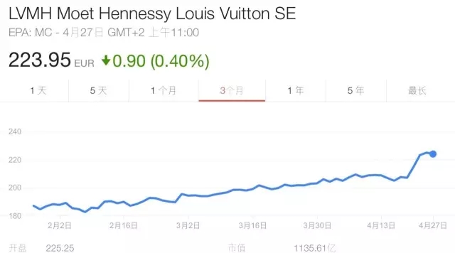 Arnault家族持有该公司74%的股份,LVMH股价当天也出现近4%的增幅。受益于股票的大涨,Bernard