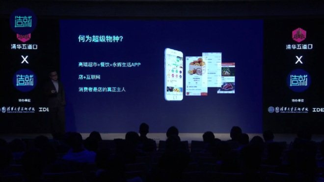 我再讲讲这个名字的起源,这个名字是我哥在上课,课程中有一个物种论,后来超级物种商业对标一个是台湾的上引水产,就是很多海鲜现场制作现场加工,另一个是意大利的超市是超市+餐厅结合互连网。后来我们寻找一个名字,后来我哥说叫超级物种怎么样,这是一个需要通过「竞争迭代」才能够生存的更好的一种模式。