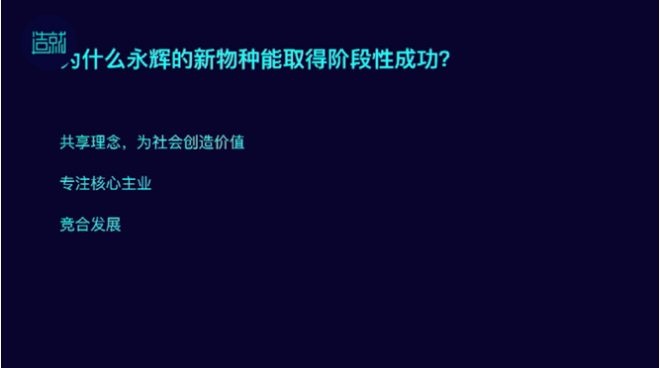 在传统的感受当中,我们实体企业都是传统企业。其实传统企业跟现有的科技应用是结合了,我们核心的现代理念是自组织创新、自改创新、加速迭代的思维。永辉的设计理念,我们做了一个很好的组织创业得设计理念,就是合伙人理念。合伙人理念就是把超市里面每一个柜组实现合伙人,每个员工成为经营者。通过提供平台给年轻人、场景、业务分层,以激活个体实现集合创新推动我们企业发展,实现共同创富。所以说超级物种建立平台与年轻人建立链接,以品牌引领消费潮流,以此提升永辉品牌价值,作为平台型永辉的切入点。