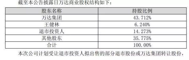 这个还真不必担忧,从万达商业此前披露的商业股权结构中可以看出:王建林拿出来的是在香港退市的万达商业的14%的股权。