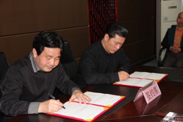 现场签约图(图左为中工美集团总经理黄东航,图右为非杭网络董事长赵旭州)